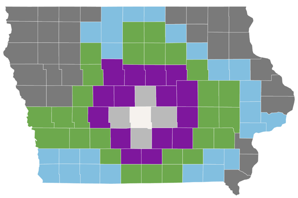 When affordable cremation care in Iowa counts, we can accommodate your needs. This map shows our complete pricing for every county in Iowa.